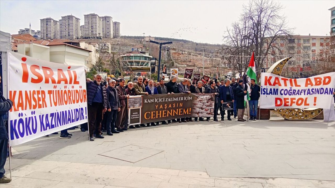 Cuma namazı sonrasında Kernek Meydanı'nda bir araya gelen Kudüs Kardeşlik Platformu üyeleri, ABD ve İsrail'e tepki gösteren pankartlar açtı.