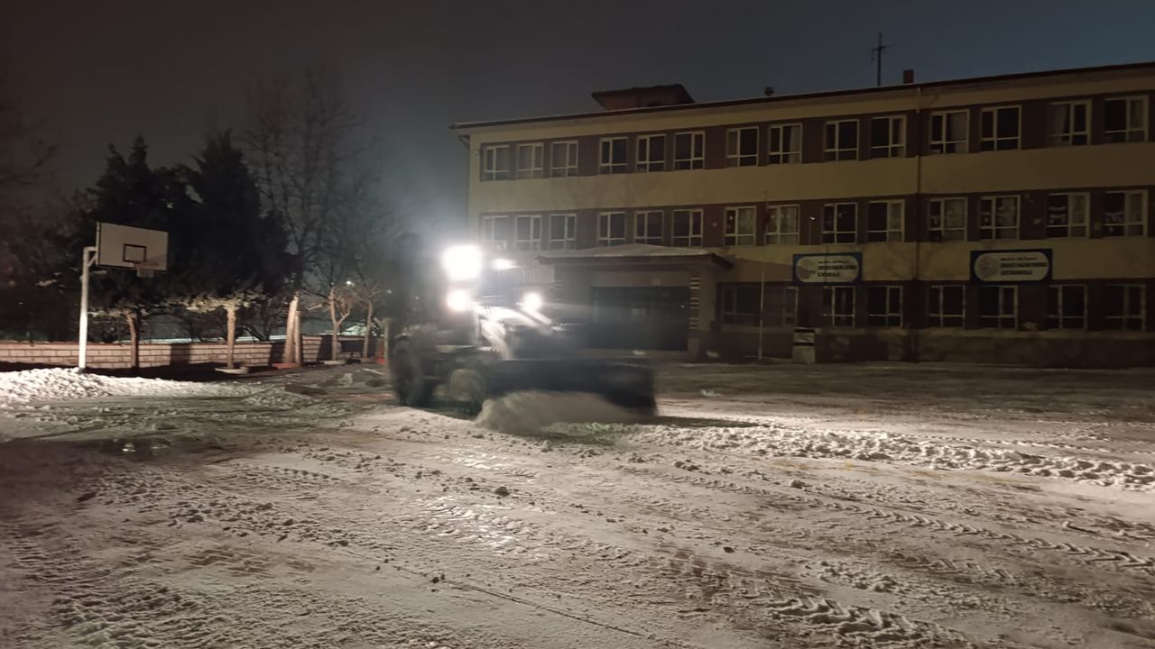 Okul bahçelerinde yapılan tuzlama çalışmalarının yanı sıra iş makineleriyle toplanan karlar kamyonlarla okul alanlarından alınarak güvenli bölgelere taşındı. Böylece öğrencilerin okula giriş-çıkışlarında ve teneffüs saatlerinde herhangi bir sorun yaşanmaması hedeflendi.