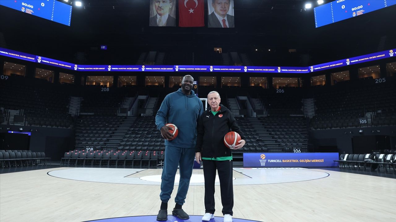 İstanbul'da Turkcell Basketbol Gelişim Merkezi'nde basketbol oynayan Erdoğan ve O'Neal, basketbol toplarını imzaladı.
