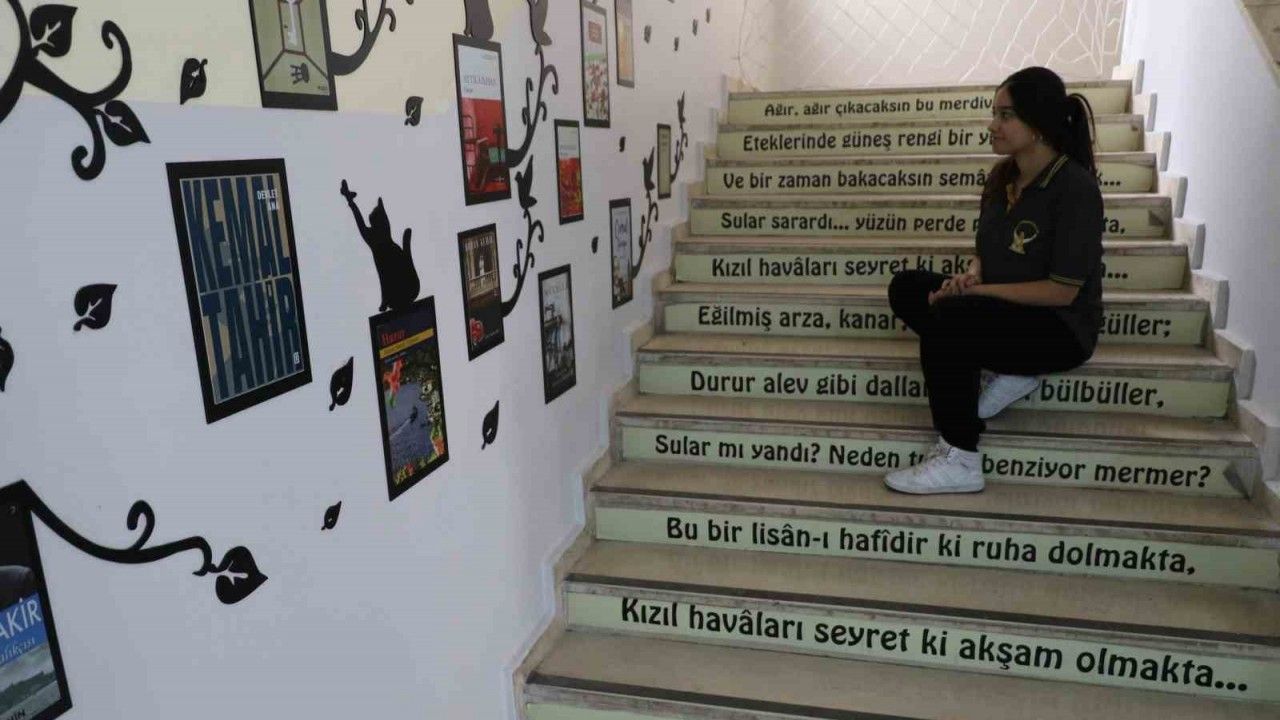 Diyarbakır’ın Kayapınar ilçesinde bulunan Adnan Menderes Anadolu Lisesi, öğrencilerin görsel hafızalarına da dokunmak için önemli bir çalışmaya imza attı. Okulun salonlarının bir bölümünü ‘Edebiyat koridoruna’ çeviren okul yönetimi burada edebiyat tarihine damgasını vuran isimlerin resimlerini ve şiirleri ile romanlarının bir bölümünü duvarlara işledi. Koridorda gezinirken edebiyatın içinde bir yolculuğa çıkan öğrenciler tarihi karakterleri yaşayarak öğreniyor. Ders aralarında soluğu edebiyat salonunda alan öğrenciler sınavlarda çıkması muhtemel sorulara yaşayarak hazırlanıyor.