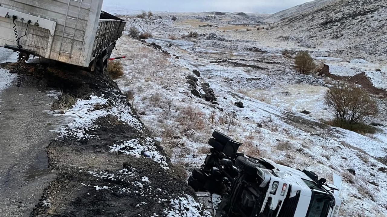 H.E. (49) idaresindeki 01 BAM 925 plakalı çekici ve 01 BAM 098 römork plakalı tır da aynı mevkide şarampole yuvarlandı.
