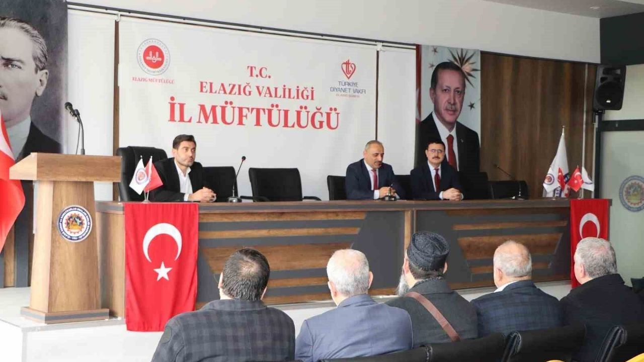 Diyanet İşleri Başkanlığı Başkanlık Vaizi Dr. Hamza Yeşildal, Elazığ'da görev yapan vaizlerle bir araya gelerek istişare toplantısı gerçekleştirdi. İl Müftülüğünde düzenlenen toplantıya İl Müftüsü Yusuf Bingöl'ün yanı sıra İl Müftü Yardımcıları Dr. Mustafa Fırat ve Tayyip Tüz ile il genelinde görev yapan vaizler katıldı. Toplantıda vaizlik hizmetleri, irşat faaliyetleri ve sahada yürütülen çalışmalar ele alındı.