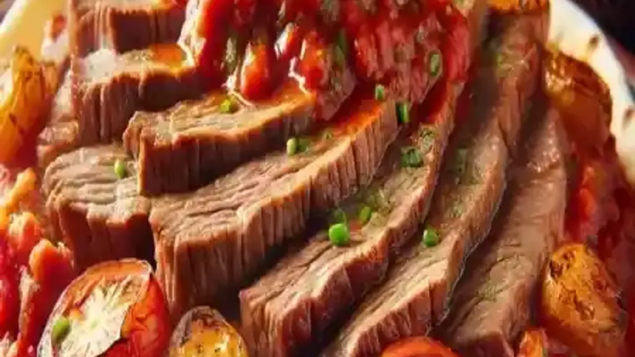 o Hazırlanan sıcak domates sosunu etlerin üzerine dökün.