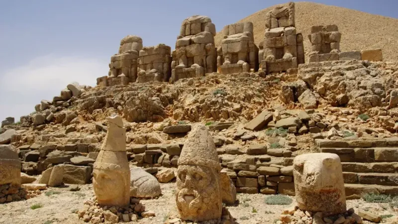 Düşünün, heykeller 8-10 metre yüksekliğinde ve kireçtaşı bloklarından özenle yapılmış! Doğu, batı ve kuzey teraslarına yayılmış bu devasa yapılar, Helenistik Dönem’in en etkileyici kalıntılarından biri olarak gözlerimizi kamaştırıyor. Antik çağda, bu bölge Kommagene olarak anılırken, I. Mithradates döneminde bağımsız bir krallık olarak önemli bir yere sahipti. Ancak ne yazık ki, M.S. 72 yılında Roma’ya karşı kaybedilen bir savaş sonrasında bu bağımsızlık sona erdi.