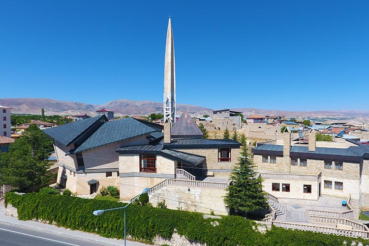 Mimar H. Şerif Ali Akkurt tarafından modern bir anlayışla yeniden inşa edilen bu yapı, klasik cami mimarisini adeta çöpe atıyor. Kuş bakışı bakıldığında güneye, yani Kıble’ye doğru havalanmaya hazır bir jet uçağını andıran cami, aslında derin bir sembolizm barındırıyor: