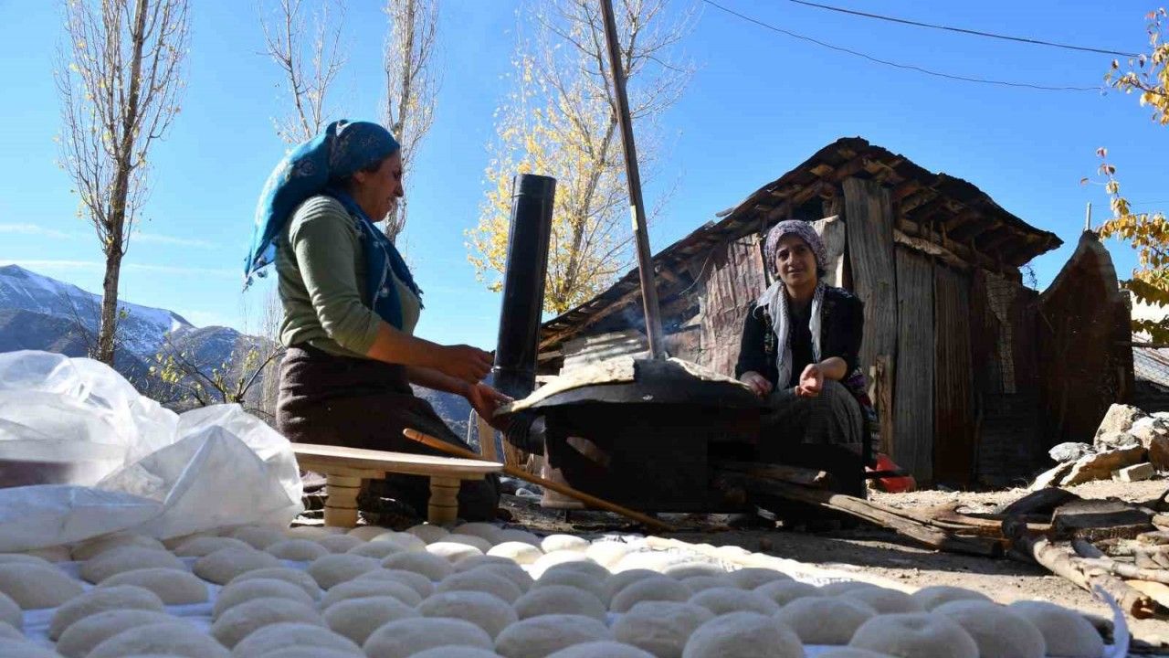 Şırnak’ta kış aylarında ekmek pişirmek zor olduğu için kadınlar, güneşli günlerde yardımlaşarak ekmek pişiriyor. Her ev için 200 ekmek pişiren kadınlar imece usulüyle kışı atlatmaya çalışıyor.