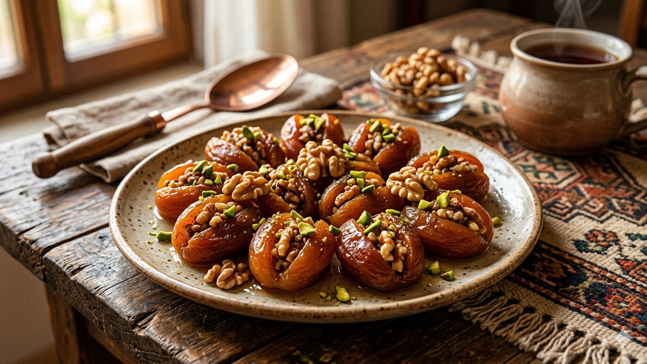 Yumuşatılmış kuru kayısının içerisine ceviz, tarçın ve bal ile hazırlanan harç dolduruluyor. Ardından tereyağı ve şekerle fırında pişirilen tatlı, ortaya çıkan eşsiz kokusuyla iştah kabartıyor.