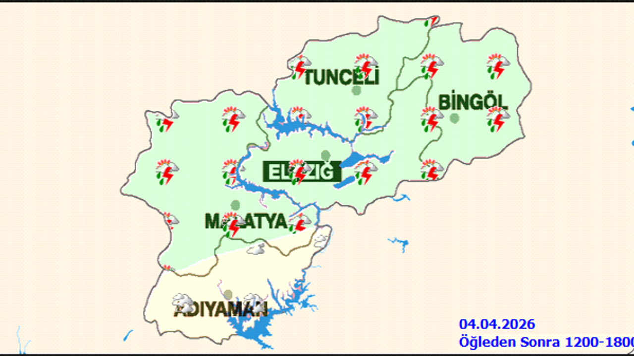 | Arguvan | Çok bulutlu, öğleden sonra gök gürültülü sağanak | 12 |
