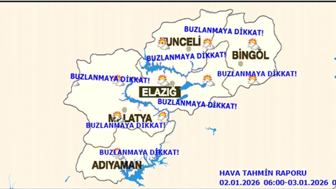 Malatya’da Dondurucu Soğuk Alarmı! Meteoroloji Malatya genelinde havanın parçalı bulutlu geçeceğini, hava sıcaklıklarının mevsim normallerinin altında seyredeceği, rüzgârın kuzey ve batı yönlerden orta kuvvette, yer yer kuvvetli eseceği tahmin edilmektedir.