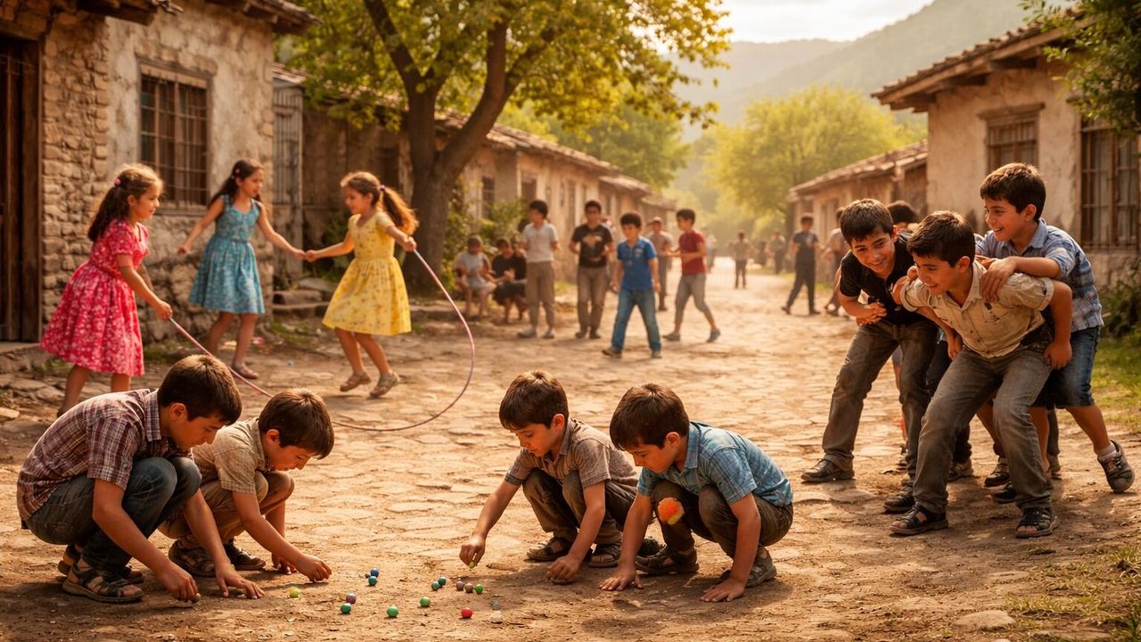 Mahalle aralarında yankılanan kahkahalar, tarlalarda kurulan takımlar ve dere kenarlarında başlayan rekabet, bir dönemin çocukluk atmosferini yansıtıyor. “Aç Kapıyı Bezirgan Başı”, “Hümmeg (Birdirbir)”, “Kökleme”, “Sapan Taşı” ve “Zımba Oyunu” gibi oyunlar yalnızca vakit geçirmek için değil; paylaşmayı, dayanışmayı ve birlikte hareket etmeyi öğreten sosyal birer araç olarak öne çıkıyor.