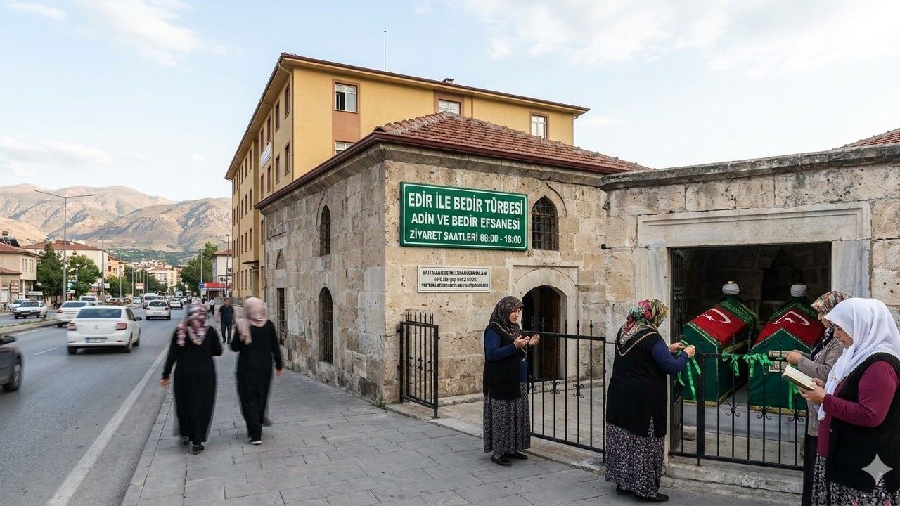 Malatya’nın Alacakapı Mahallesi’nde, yol kenarında mütevazı bir yapıda bulunan türbe, halk arasında Edir ile Bedir olarak biliniyor. Ancak bölge tarihçileri ve yerel anlatıcılar, bu isimlerin aslındaki telaffuzunun Adin ile Bedir olduğunu ifade ediyor.