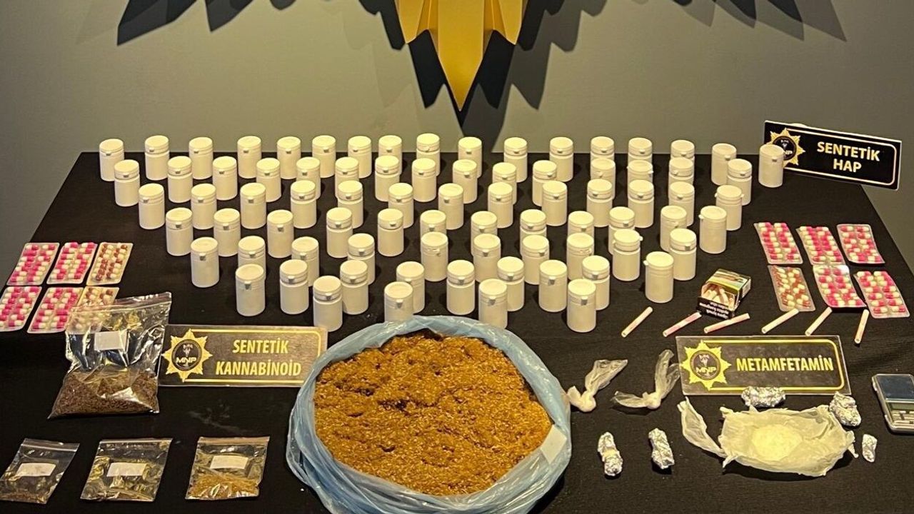 Yapılan operasyon neticesinde muhafaza altına alınan maddelerin dökümü İl Emniyet Müdürlüğü tarafından paylaşıldı. Aramalar sonucunda; 1.611 gram sentetik kannabinoid, 5.079 adet sentetik ecza hap, 71 gram metamfetamin ve uyuşturucu ölçümünde kullanılan 1 adet hassas teraziye el konuldu.