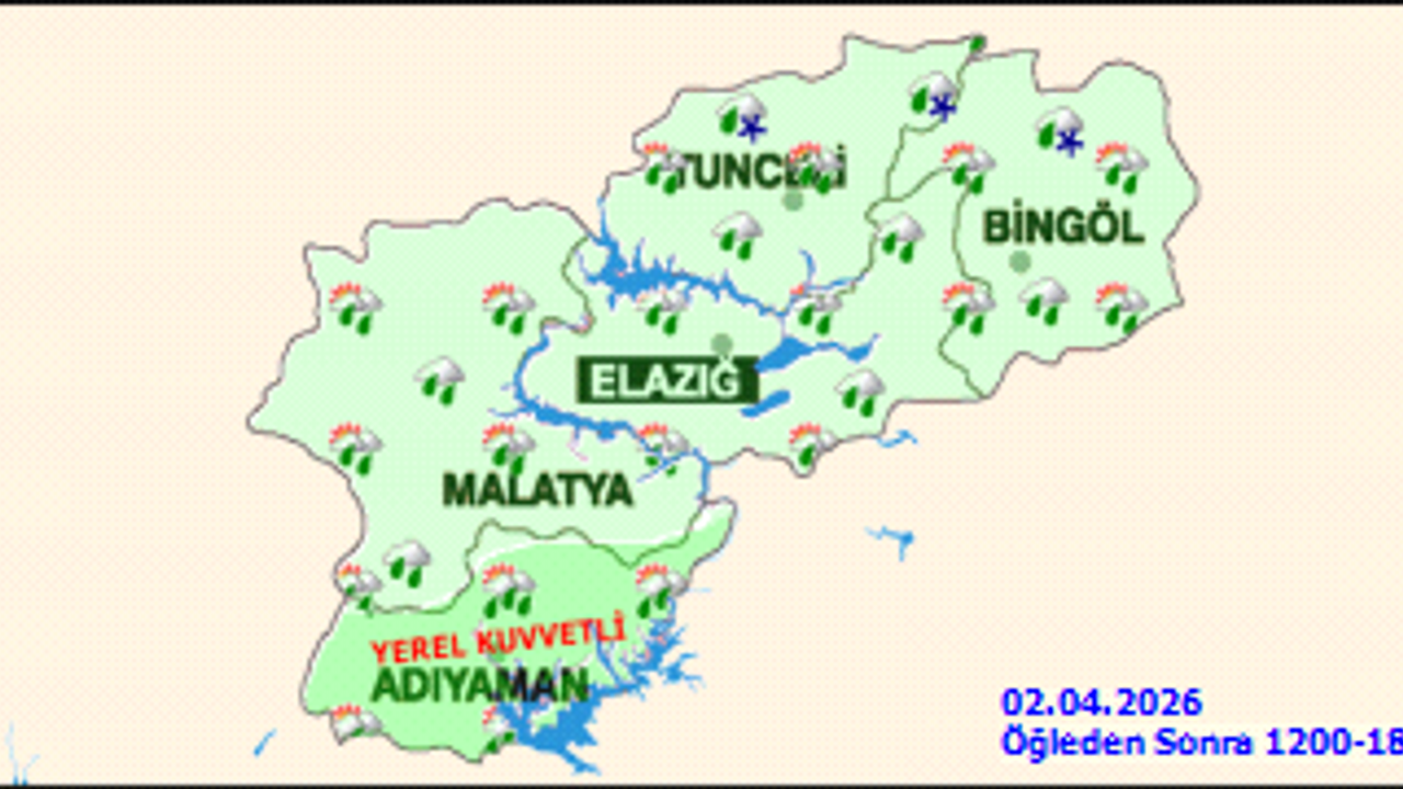 | Akçadağ | Parçalı ve çok bulutlu, aralıklı yağmurlu ve sağanak yağışlı | 12 | |