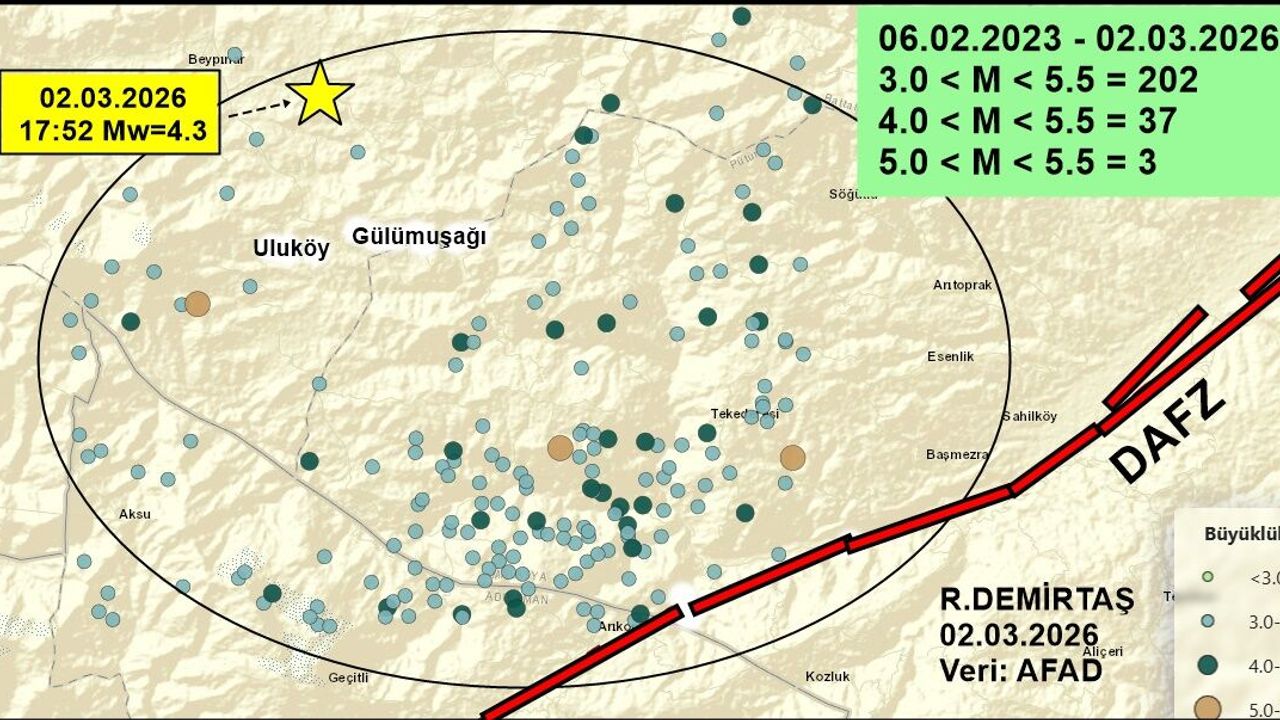 Demirtaş’ın açıklamasına göre, 2 Mart günü saat 17.52’de meydana gelen 4.3 büyüklüğündeki deprem, Doğu Anadolu Fay Zonu’nun Çelikhan–Erkenek segmentinin 11 kilometre batısında, Battalgazi ilçesine bağlı Uluköy–Gülümuşağı çevresinde gerçekleşti.