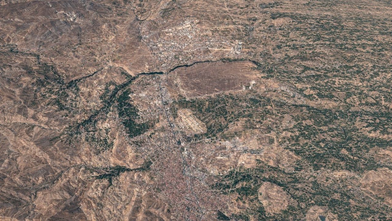 Ancak yıllar ilerledikçe bu tablo yerini daha yoğun ve yaygın bir yapılaşmaya bırakmış. Günümüze ait görüntüde Malatya’nın merkezinin belirgin şekilde büyüdüğü, yerleşim alanlarının çevreye doğru genişlediği görülüyor. Eskiden yeşil olan birçok alanın artık beton yapılarla kaplandığı dikkat çekiyor. Şehir, yalnızca büyümekle kalmamış; aynı zamanda doğanın içine doğru ilerlemiş.