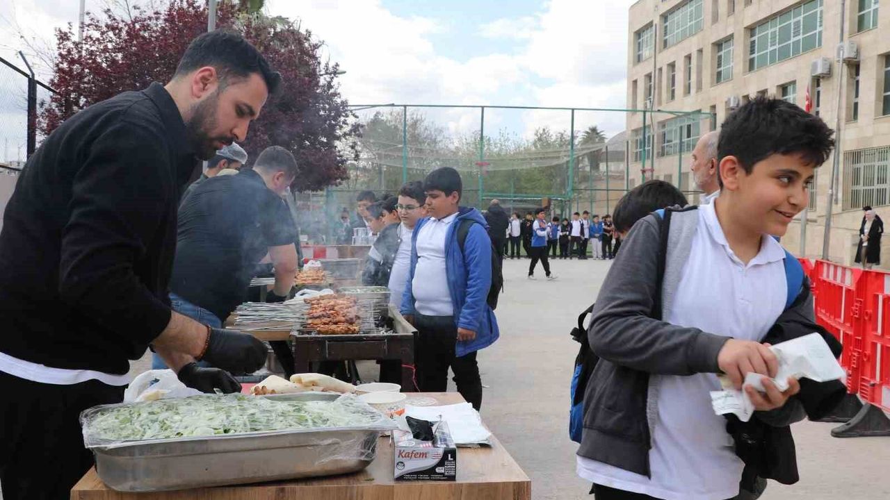 Şanlıurfa’da bulunan Prof. Dr. Necmettin Erbakan İmam Hatip Ortaokulu’nda öğrenciler için anlamlı bir etkinlik düzenlendi. Hayırsever bir lokantacı tarafından organize edilen etkinlikte, okul bahçesinde kurulan mangallarda kömür ateşinde pişirilen tavuk incik kebapları öğrencilere dürüm halinde dağıtıldı.