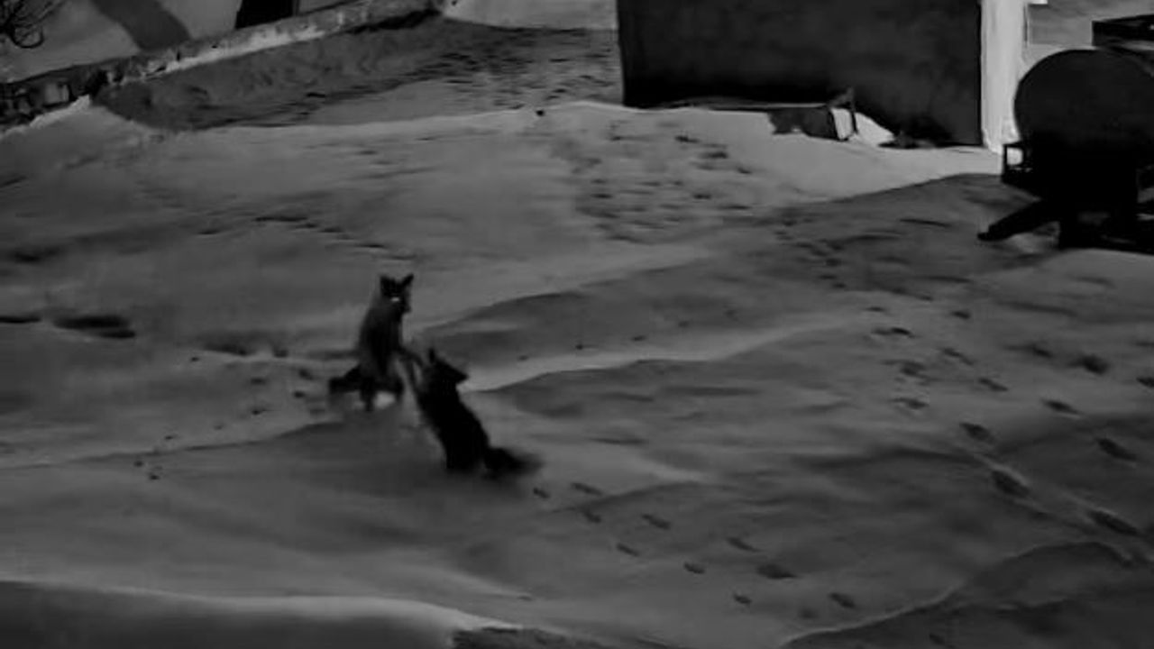 Sivas'ın Gürün ilçesine bağlı Çiçekliyurt köyünde yaşayan Hüseyin Şimşek, evinin önünde kar tabakasında hayvan ayak izlerini fark etti. Ayak izlerinin hangi canlıya ait olduğunu merak eden Şimşek, evinin duvarında bulunan güvenlik kamerası görüntülerini izledi. Evinin önünde yiyecek arayan tilkilerin görüntüsünü gören Şimşek, o anları kaydetti. Güvenlik kamerasının kadrajına giren 2 tilki, bir anda kavga etmeye başladı. bir süre kavga eden tilkiler, daha sonra bölgeden uzaklaştı.