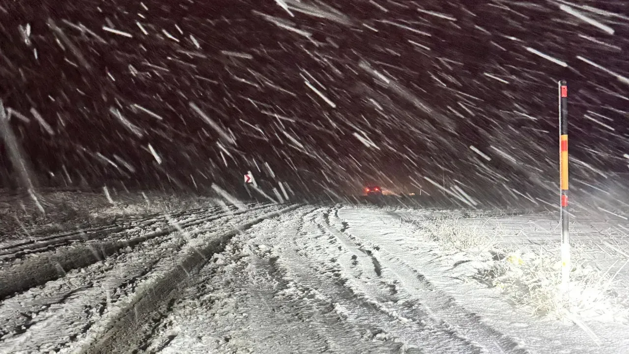Malatya'nın Hekimhan ve Sivas'ın Kangal ilçeleri arasında etkili olan kar ve tipi nedeniyle ulaşıma kapatılan kara yolunda zincirli araçların geçişine izin veriliyor.