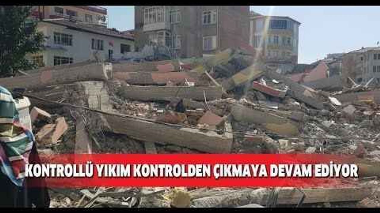Kontrollü yıkımı yapılan ağır hasarlı bir bina, yıkım sırasında çevresinde bulunan 2 katlı bir evin üzerine devrildi. Cep telefonu kameralarına anbean yansıyan olayda ikamet sahipleri büyük panik yaşadı.