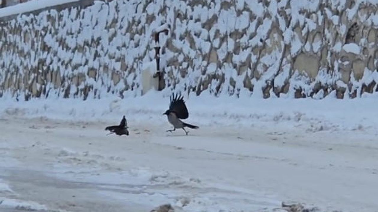 Malatya'da İlçe beyaza büründü, aç kalan kargalar sokaklara indi