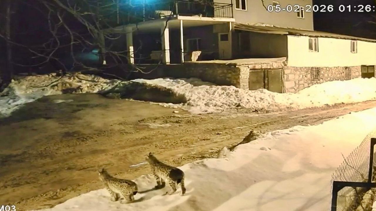 Malatya’nın Hekimhan ilçesi Güzelyurt Mahallesi’nde nesli tükenme tehlikesi altında bulunan vaşak ailesi güvenlik kamerasına yansıdı. 5 Şubat gecesi kaydedilen görüntülerde, 3 vaşağın mahalle meydanında bir süre dolaştığı görüldü.