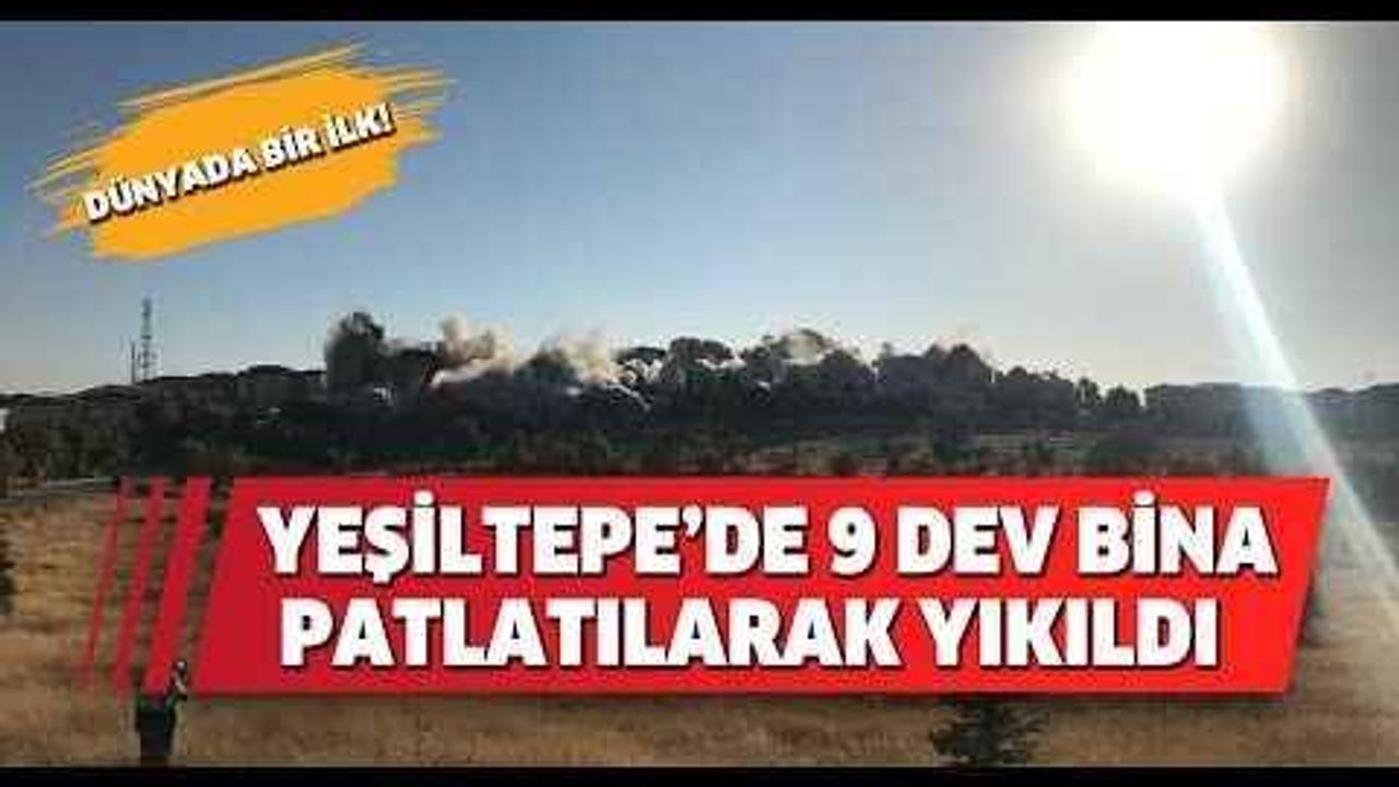 Malatya’da ağır hasar raporu verilen Yeşiltepe’deki 15’er katlı 540 dairenin bulunduğu 9 bina patlatma yöntemiyle yıkıldı. Bin 660 kilogram patlayıcı kullanılan yıkım, en büyük sıralı yıkım olması nedeniyle dünyada ilk oldu.