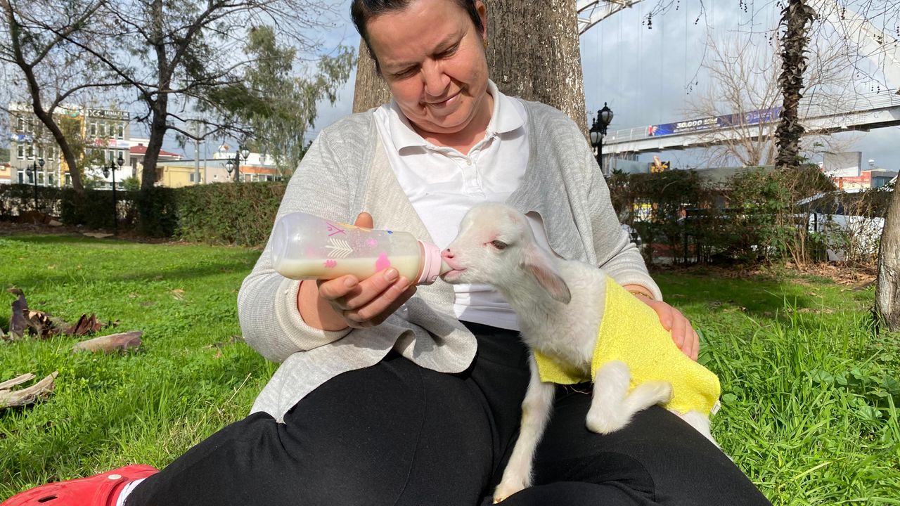 Anne koyunun yavrularından ikisini kabul edip, 'Naciye'yi dışlamasına üzüldüklerini dile getiren Erten, 'Kuzu öldü ölecek derken enjektörle ve biberonla besledim. Şimdi maskotum oldu. Ben nereye gidersem o da oraya geliyor.' dedi.